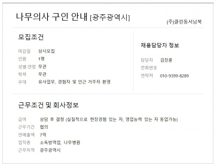 구인/구직 알림마당 구인/구직 나무의사 구인안내_(주)클린동서남북 [광주광역시] 페이지 정보 작성자 최고관리자 댓글 0건 조회 152회 작성일 25-11-19 10:52 목록 본문 이전글나무의사 구인안내_(주)세인조경 [서울] 25.11.28 다음글나무의사 구인_ (주)다함조경 [용인] 25.10.29 댓글 0 댓글목록 등록된 댓글이 없습니다.